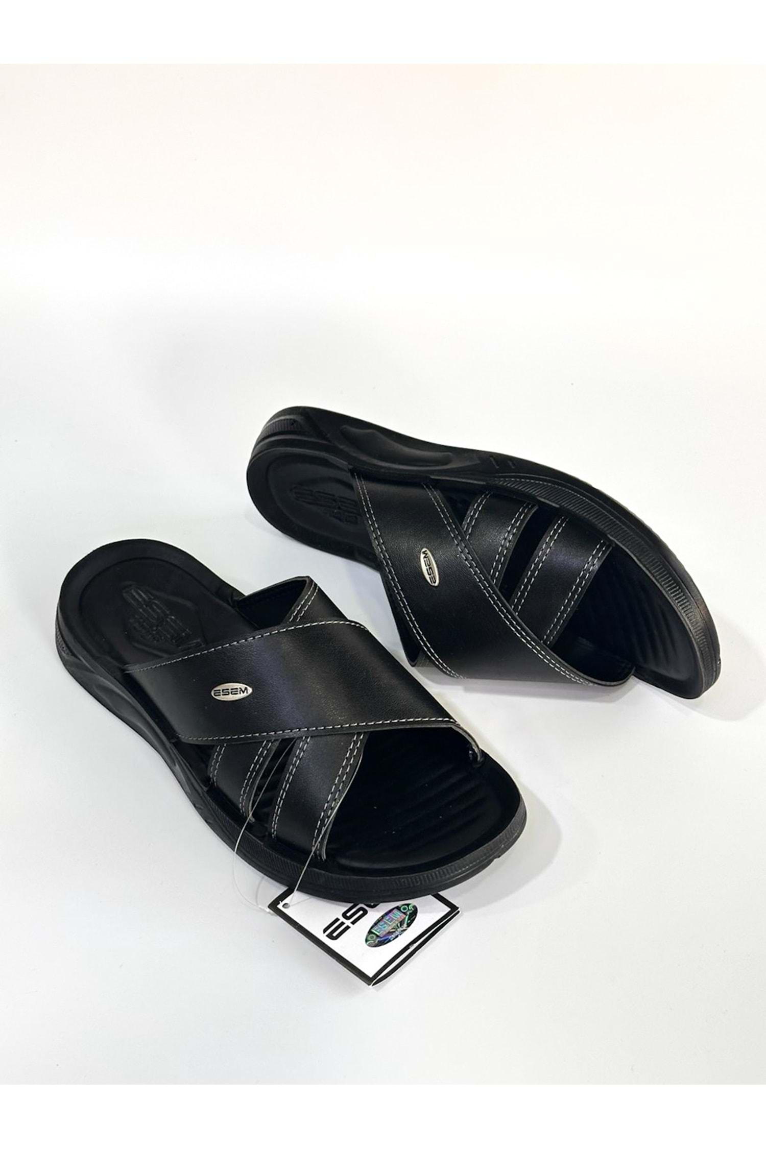 ESEM BA04512 Siyah Erkek Çapraz İkili Günlük Yumuşak Taban Terlik - Siyah - 45