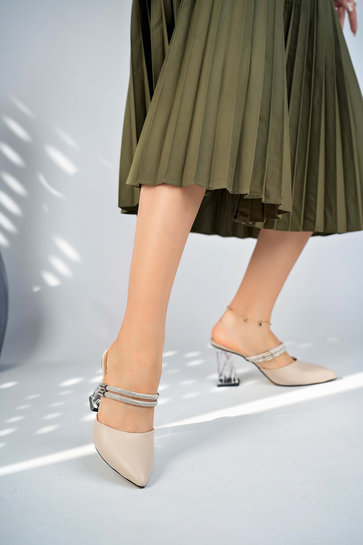 -Ürünlerimiz % 100 Yüzde Yüz el İşçiliği Birinci Kalite malzemeden Üretilmiştir. -Ürün Dış malezemesi = Suni deri- tekstil -Bağlama Şekli : Taşı İkiye Ayırarak Ayakkabı Olarak Giyilebilir. -Topuk Yüksekliği : 8 Cm -Ön Taban Platform Yüksekliği : Cm