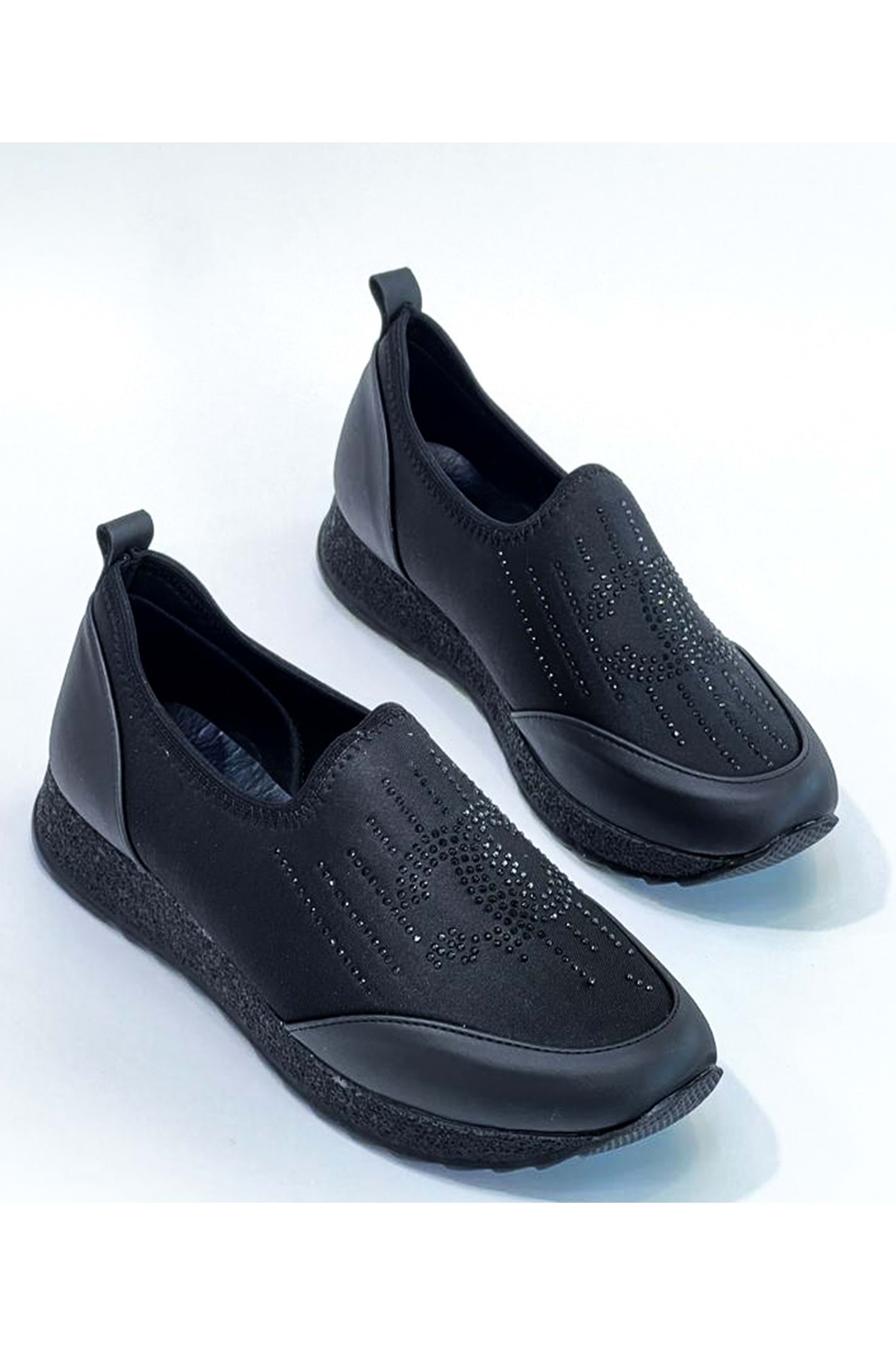 BulutMod BA04151 Siyah Kadın Bağcıksız Taşlı Büyük Numara Günlük Spor Ayakkabı