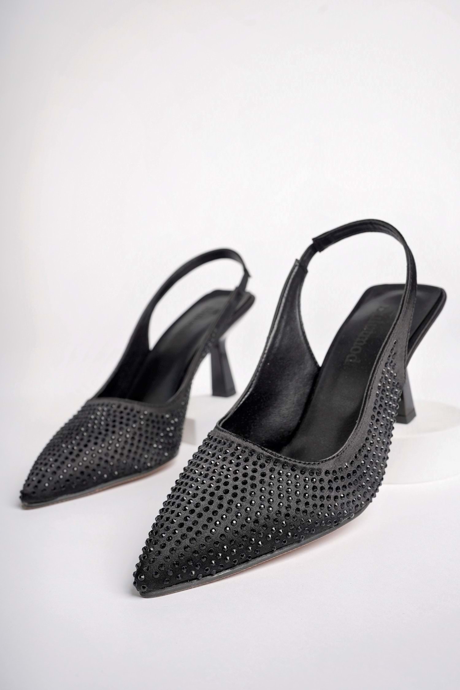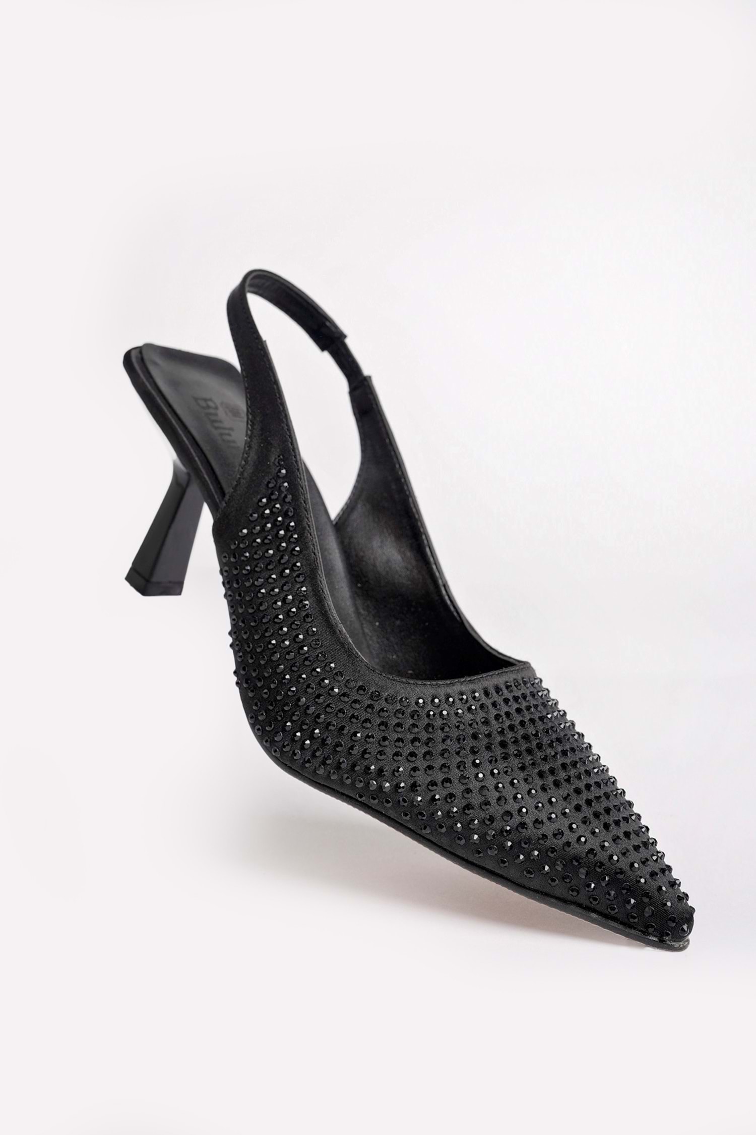 BulutMod BA04534 Siyah Kadın Taşlı Abiye Lastikli Klasik 7cm Topuklu Ayakkabı - Siyah - 37