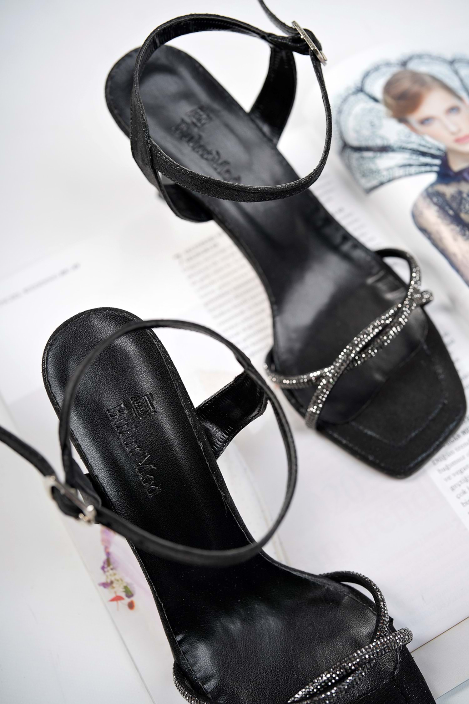 BulutMod Siyah Kadın Sargı Taşlı Abiye Klasik Topuklu Ayakkabı - Siyah - 36 - BA04283-Siyah-36